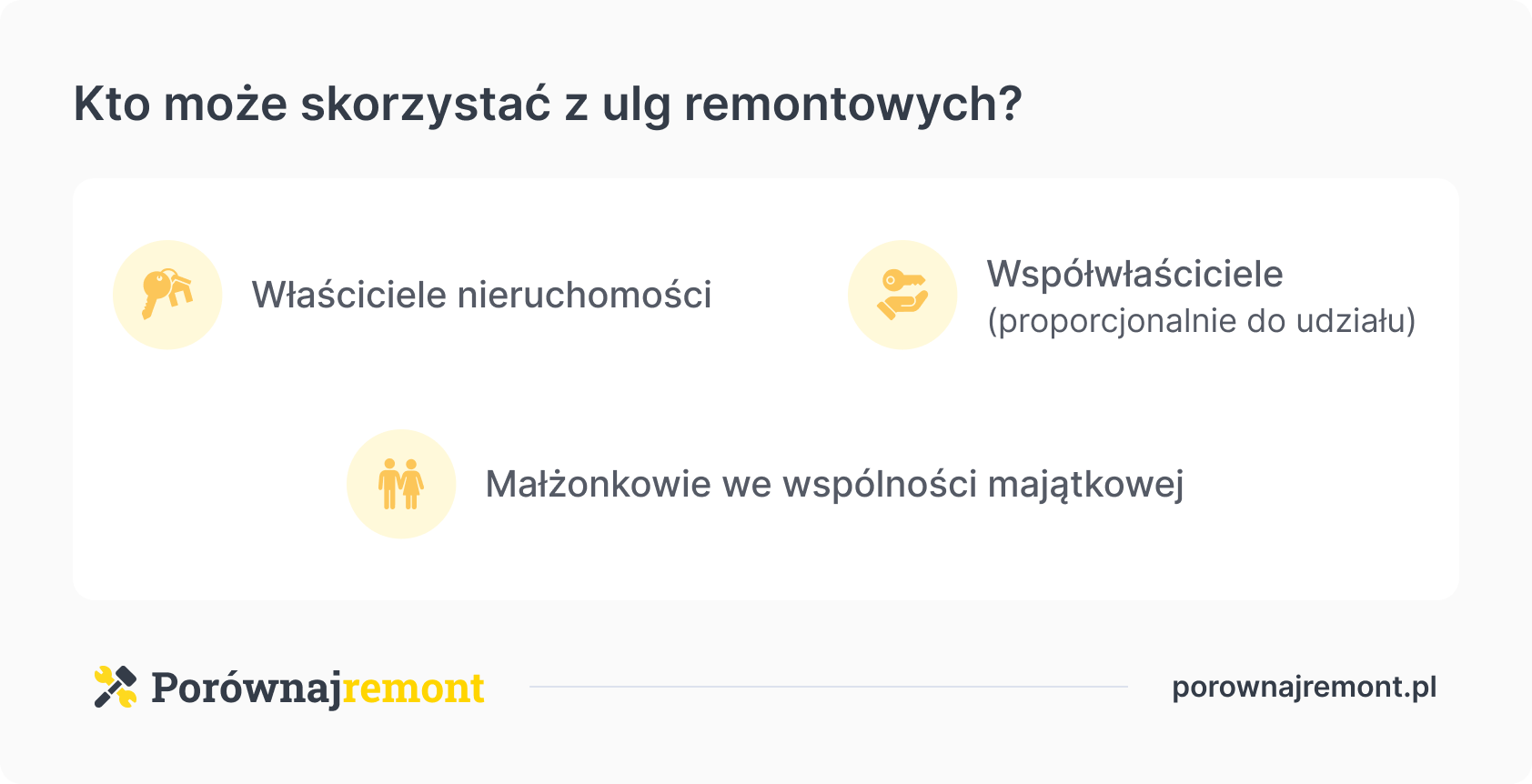 Zakres możliwych odliczeń zależy od rodzaju tytułu prawnego. Osoby dysponujące aktem notarialnym, księgą wieczystą lub postanowieniem sądu o spadku mogą w pełni wykorzystać ulgę. W przypadku współwłasności każdy odlicza wydatki proporcjonalnie do posiadanego udziału.